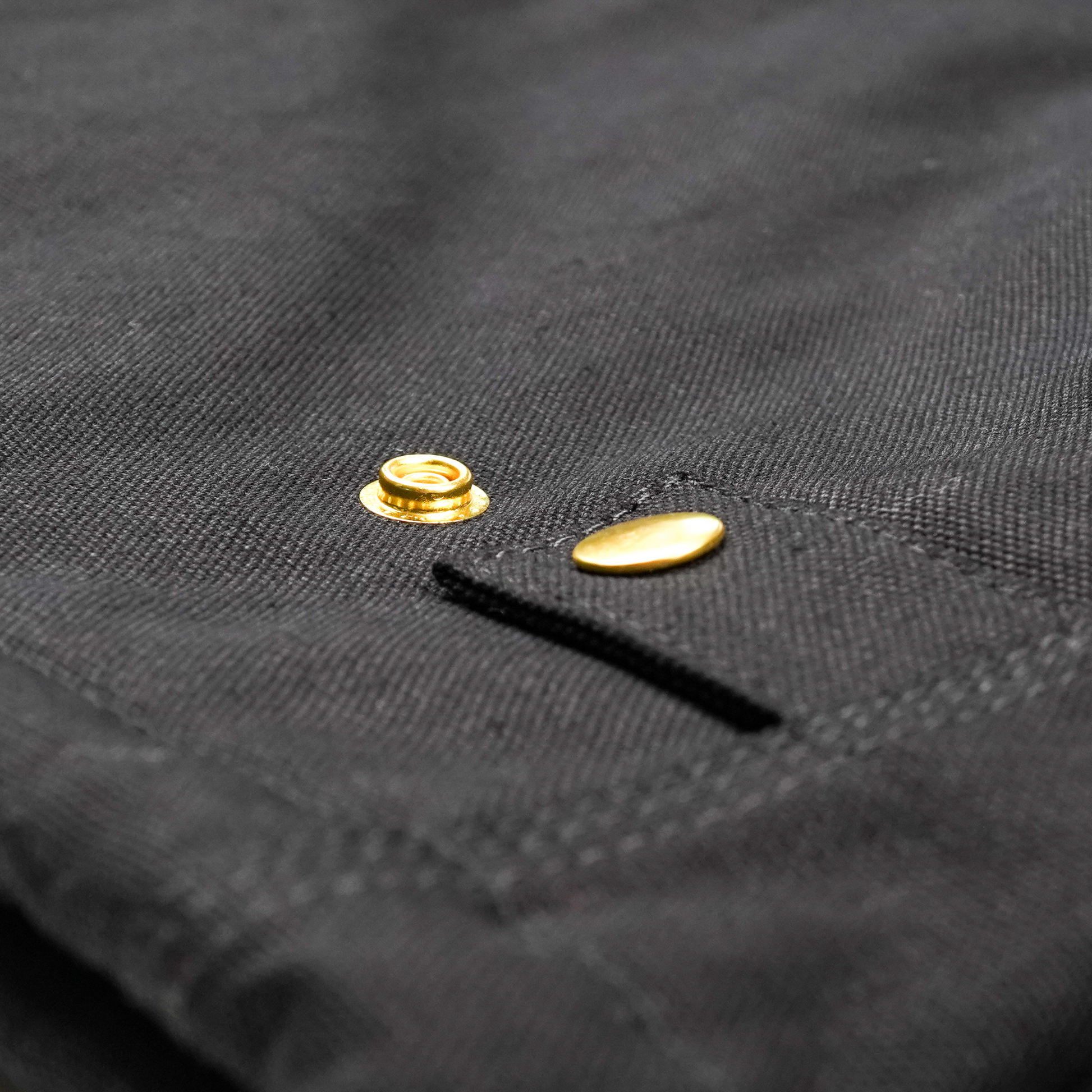 - Shiny Brass snap buttons on the waist